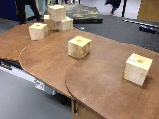 10. tomar dos bloques de madera y uno en la base y el otro tornillo en la parte inferior de la parte superior.
