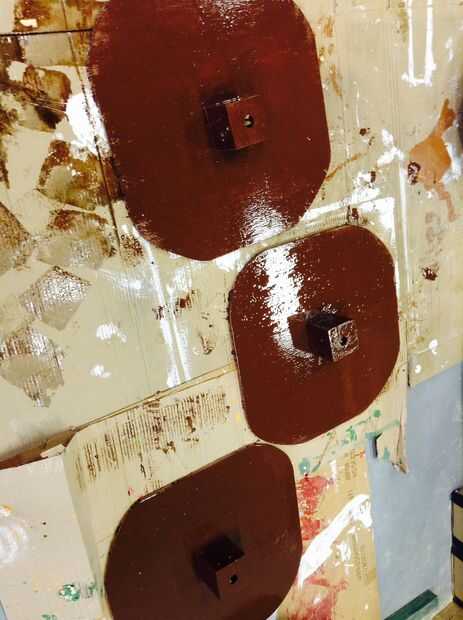 13. después de las capas de barniz seco, tomar los tornillos y el tornillo en el poste de metal de 44 pulgadas en la parte superior y la base