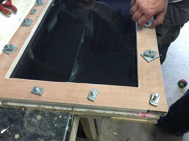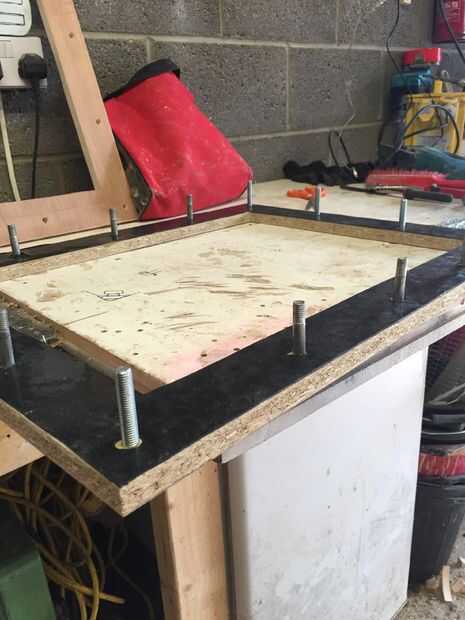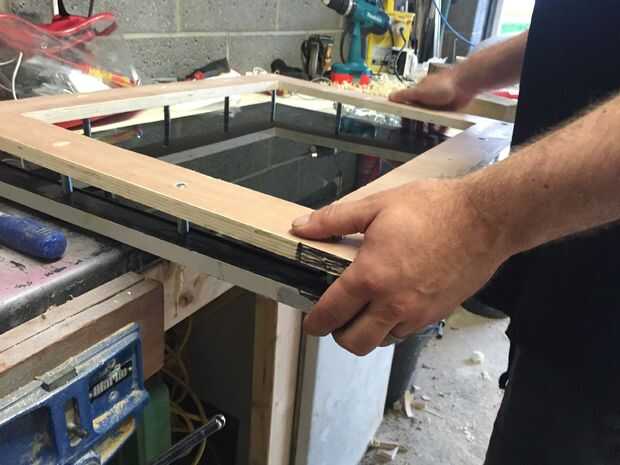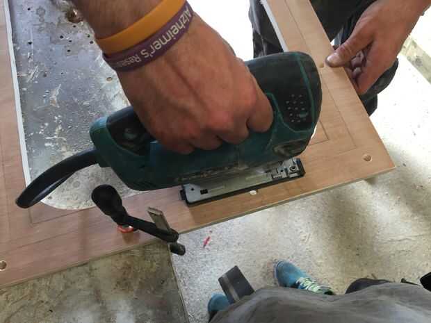 Una vez que se corta el agujero del centro. Mover la basura hacia fuera de la forma y marca una línea por el centro de la izquierda sobre el marco exterior es la parte que necesitamos y espaciar uniformemente los agujeros para los pernos de fijación. Asegurándose a fregadero contrario las cabezas de los pernos en la parte inferior.