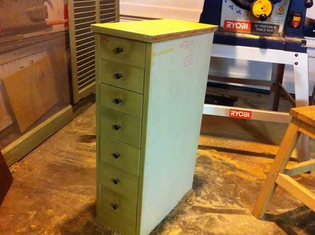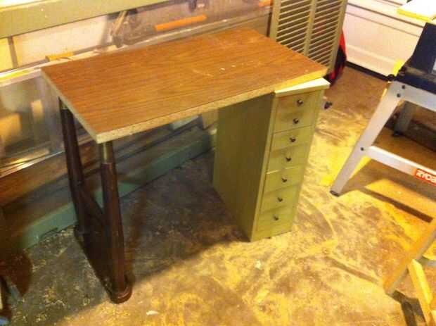 El primer elemento para mí en cualquier proyecto es comenzar mirando a través de lo que tengo que terminar un proyecto y luego comenzar a armar un concepto. Mirando a través de mi casa y especialmente de mi garaje, es una gran fuente de inspiración porque... Soy un acaparador de madera. Allí, dije it... acumulan restos de madera. Y también partes de otros muebles que he guardado para que los pueda utilizar para futuros proyectos en un Dr. Frankenstein experimentación. En este caso, he encontrado la tapa de un viejo mueble de oficina (1-1/4" espesor aglomerado), algunas viejas piernas de escritorio de una oficina previa y una pequeña pila de cajones de guardado de un gabinete construido en. Niño, mi hija que estaba emocionada cuando le mostró un montón de piezas de chatarras y le dijo que sería su nuevo escritorio!!!!!! ¿No es hermoso?