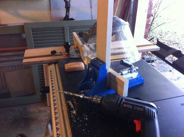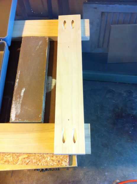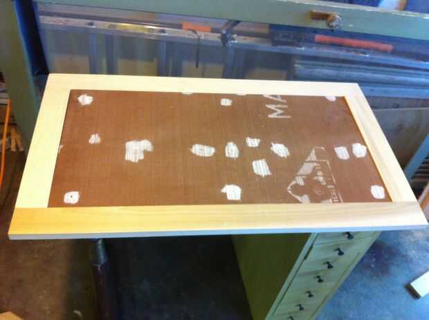 Para crear el álamo trim para rodear la tela de la pizarra, primero la moldura se corta a la longitud apropiada para el conejo en el tablero de partícula (Recuerde que la tela de pizarra añadirá ~1/8 "en el interior dimensión). Una vez completadas, agujeros de bolsillo se agregan a las piezas de ajuste corto usando un Kreg Jig. Colocación de las piezas sobre una superficie plana, boca abajo, el ajuste se asegura con tornillos en los agujeros de bolsada recién creado (Asegúrese de que todo es cuadrado). Ahora, la nueva parte superior es llevada a la mesa de fresadora para añadir un ligero, 1/8" Achaflane todos los bordes duros. Más tarde el álamo ajuste es lijado y sellado antes de fijación final al top terminado.