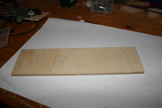 5 | Usando otro cortada desde la base, o un repuesto del pedacito de madera si no más recortes están disponibles y su ancho a la placa base. Esto se utilizará como el pedal de pie.