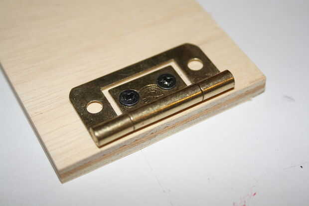 4 | Fije una bisagra a la placa base en el extremo opuesto a la ranura.