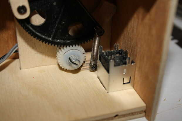 Para mantener el conjunto de engranajes en su lugar utilizaremos tornillos largos. Los tornillos vendrá del lado izquierdo, a través del panel lateral, a través de la Junta de montaje del engranaje y en la placa base.