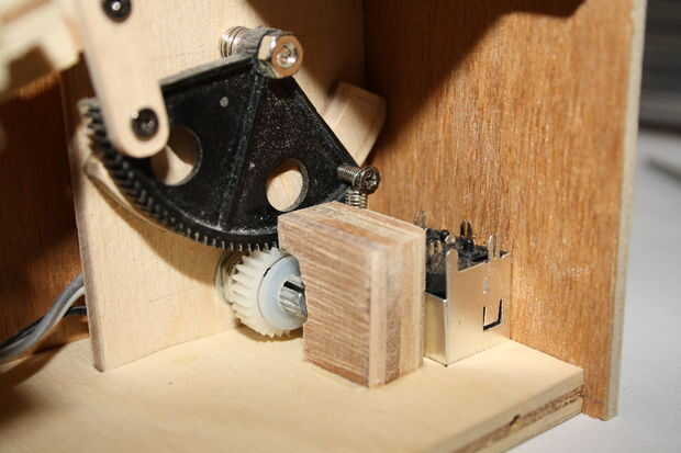 Durante las pruebas encontré que el engranaje más grande se movió fuera de la alineación si presión demasiado rápido se desconectó el pedal. Investigando el problema demostró que el engranaje más grande torció ligeramente causando los engranajes liberar, así que para detener este suceso me un soporte. El soporte se dobla como una parada de espalda para el socket de 4 pines y como una guía para el engranaje más grande.