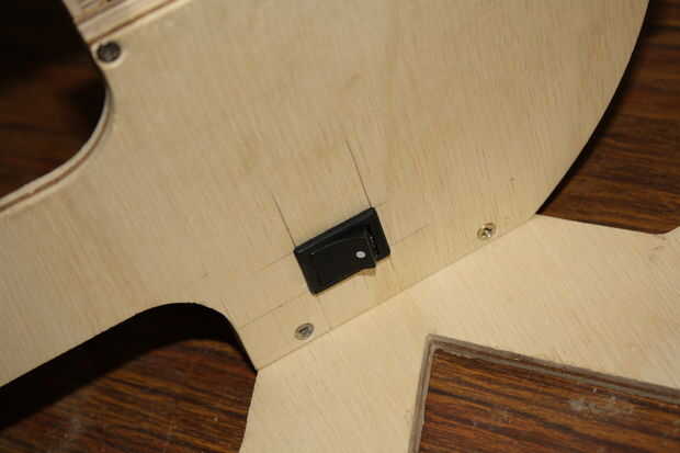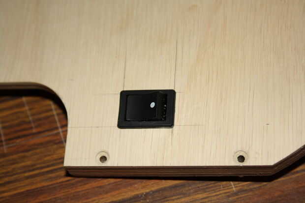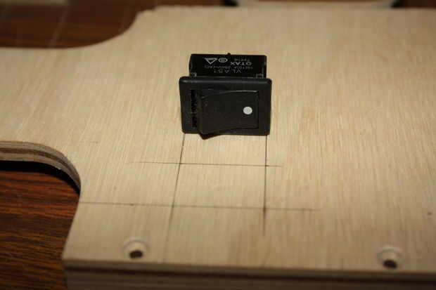 Otro fluke, o consecuencia de mi genio subconsciente, usted decidido, es que profundidad del interruptor es casi idéntico al grueso de la ayuda de C-forma. Así que vamos a cortar un agujero en forma de C y montar el interruptor en él.