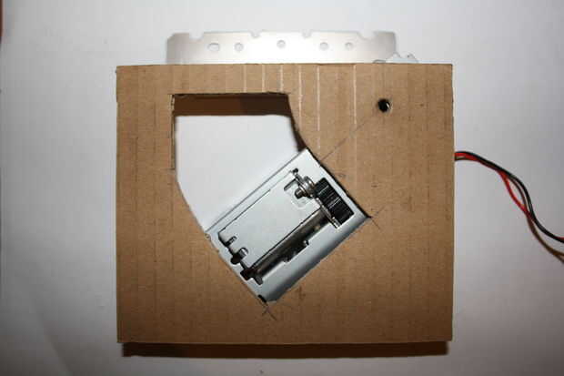 5 | Tomar medidas adicionales, teniendo en cuenta la posición del agujero del pivote y la zona donde el motor sobresale por encima de la Asamblea. Transferir las medidas a la cartulina y recorta las áreas relativas.