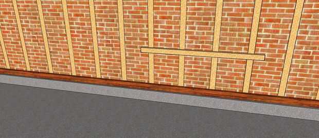 Verificados por duplicado los postes de madera y son 16 pulgadas aparte. Escoger mi punto de partida en mi 2 x 3 y dejar una huella, luego repetir cada 16 pulgadas.