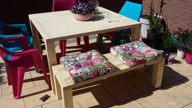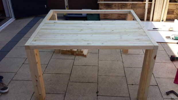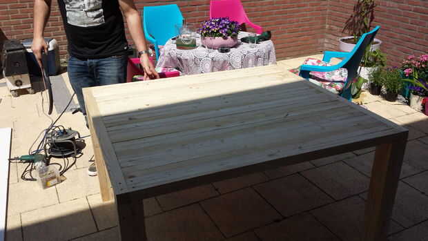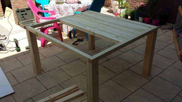 Una vez terminada la tapa de tabla, colocar las piernas a cada lado y listo!