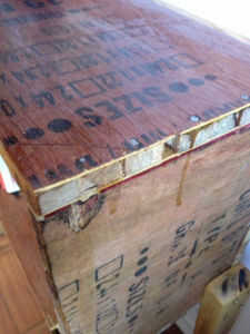Tomé la caja aparte y la reconstruyó para cambiar las uñas y he aplicado el pegamento de madera, porque los viejos oxidados y frágil.