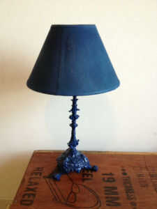 Tenía esta lámpara con cuerpo de oro y sucio, así que rociaron con tinta azul. Simple como eso.