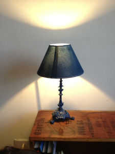 Una lámpara de mesa elegante con efecto sombra hermosa de rascar materiales. Yo lo llamo una lámpara de defensa porque la parte superior se asemeja a las defensas de tejidos utilizadas para evitar que naves de daños en el muelle. No sé si se utiliza