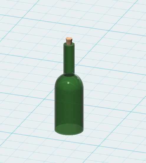 Para la botella de pila un cilindro, un hemisferio y un cilindro mucho más pequeño encima de la otra para crear una forma de botella de vino. Entonces lo de la cáscara y cambiar el material de vidrio, he añadido y superposición de color verde. para el corcho, abuhardilladas dos círculos, cambiar el material a la madera que de lejos parecía corcho. Entonces le espetó a la botella.