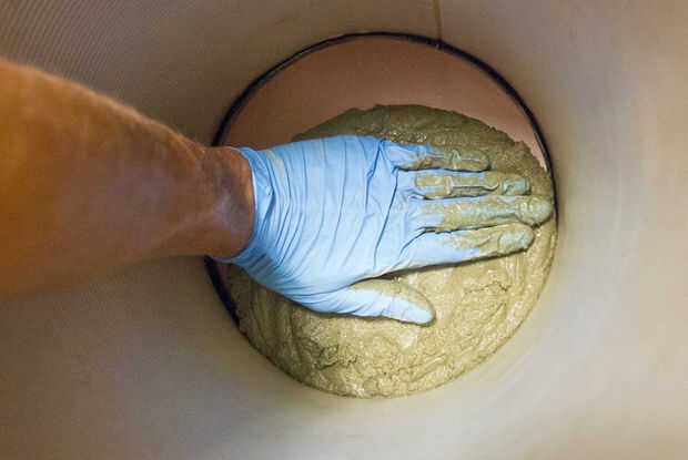 • Comenzar por la parte inferior de la forma de un grueso uniforme de embalaje. Presione la mezcla en los bordes de la forma para no dejar burbujas de aire.