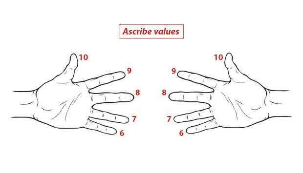 -En cada mano, atribuir un valor de 6 a 10 a cada dedo