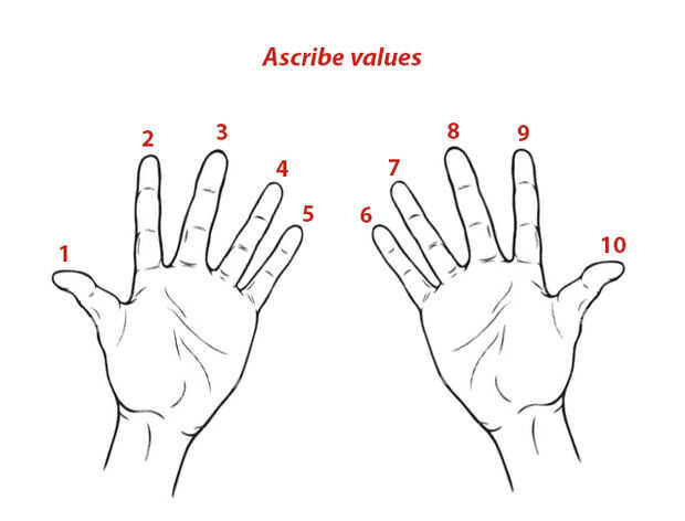 -Entonces atribuir valores de 1 a 10 para los dedos