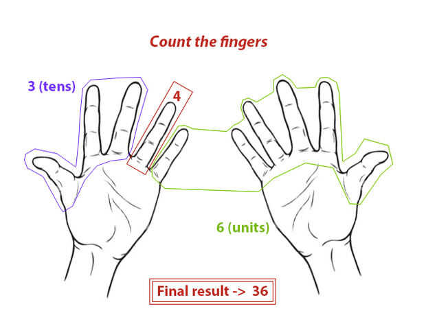 -Doblar el dedo cuyo valor desea multiplicar nueve veces