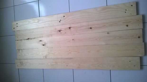 1. Madera de palet (plano primero) lo compré 5$ por 10 pieza 1.2x0.09x0.01m