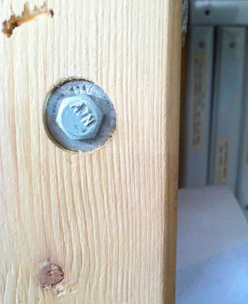 • Perfore previamente los orificios en la 2 x 4 (uso más pequeño que 1/4" para ajuste perfecto)