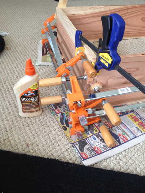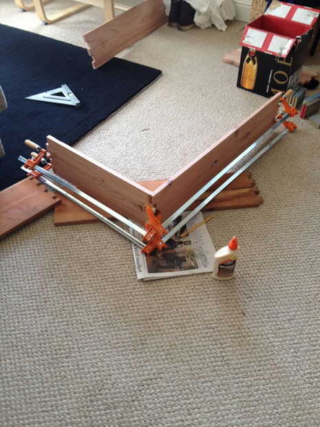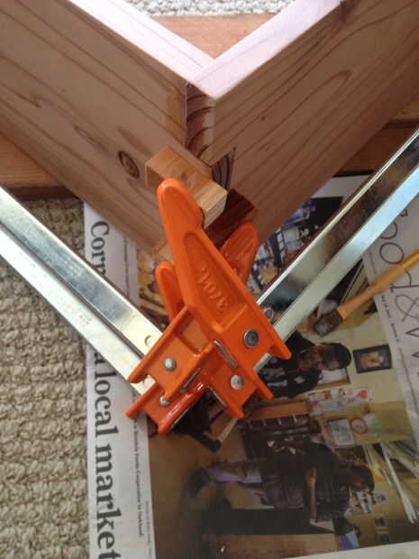 • Por último, Busque un ángulo de 90 grados con un ángulo recto herramienta en el interior de la articulación. Porque las tablas son largas, se puede tipo de empujar en la alineación apropiada si son solamente apagado por un poco. Esperar al menos dos horas, retire la pinza del primer empalme y pasar a la siguiente.