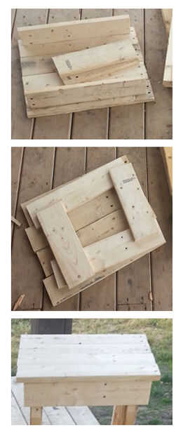 Cortar 4 trozos más pequeños para hacer una caja debajo de su mesa. Atorníllelos juntos para formar una tapa.
