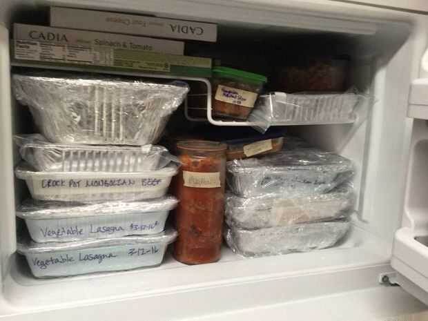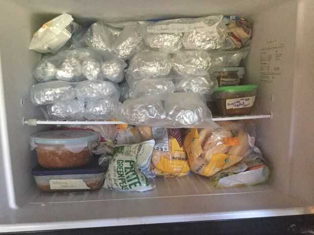 Empecé a cocinar un mes antes de la fecha de vencimiento del bebé. Hasta ahora estamos una semana más allá de esa fecha y esperando bebé, por lo que he conseguido que una semana más de preparación de alimentos en hasta ahora!! No hay absolutamente ningún espacio en cualquier congelador, así que creo que significa que mi trabajo de preparación de alimentos se hace! Este ha sido un proceso muy fácil y gratificante - me encanta ver nuestros congeladores repleto de toneladas de opciones deliciosas!