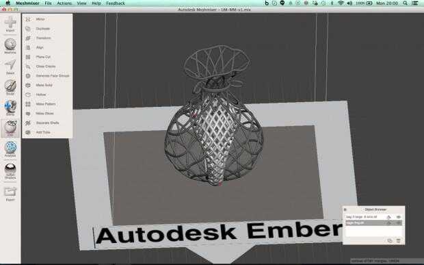 MeshMixer para Ember es la herramienta que se utiliza para curar, orientación, diseño y crear soportes para sus modelos 3D pueden ser 3D impreso en ascua.Nota:MeshMixer para Ember es una compilación especial de Meshmixer que incluye una serie de ajus