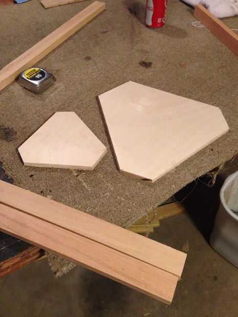 Entonces vienes 2 1/2 pulgadas en la hacen lados pequeños que una marca y una plaza de la corte. Luego en la punta gran medida solo hasta lo que se ve cuadrada y ovoide cortarlo. No recuerdo pero mi gran punto fue cortado abajo a. Para su estante grande usted agrega una pulgada en los cortes cuadrados.