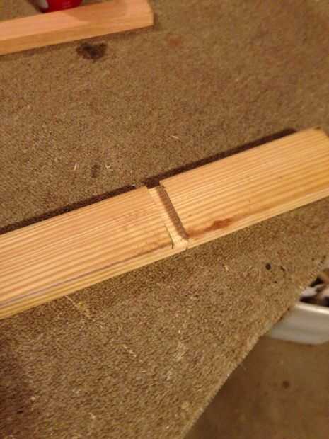 Sus 7 pulgadas de la marca y luego utilizar un corte de tu capa de 5/8 para marcar el otro lado para que sepas cómo amplia a través de la sierra. Vas a cortar cada muesca en 8 grados también Asegúrese de que sus ángulos la misma ejecutan como las piernas. Luego configurar una plantilla para ejecutar a través de su sierra. Luego limpiar los cortes con un archivo o lo que sea.