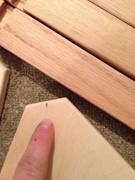 Centro de sus bordes en sus ranuras, poniendo una marca de lápiz en los centros de sus surcos y bordes de la plataforma.