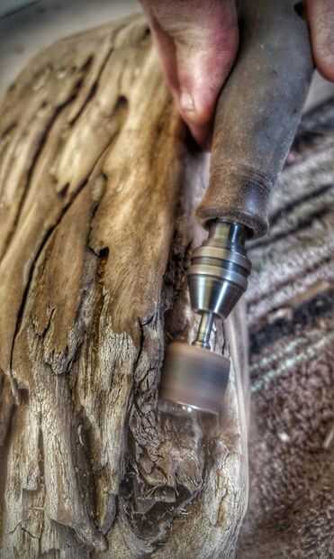 Las piezas se reunieron, si lo desea, pueden limpiarse mediante lijado. A menudo empiezo con un pedazo de 60 grano para el desbaste, seguido por un grano 220 para pulir. Puede utilizar una herramienta giratoria para llegar a zonas estrechas. O, si te gusta, dejas los pedazos vacíos y sin limpiar para un look más natural, rústico.