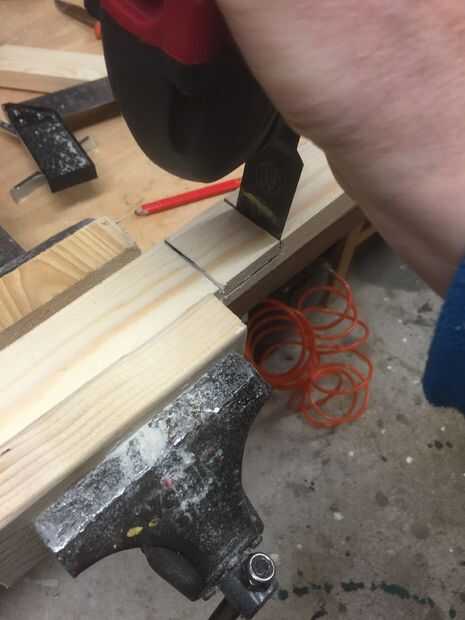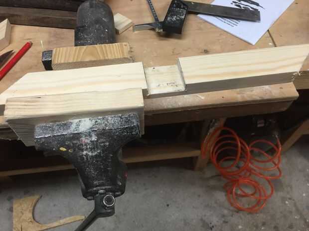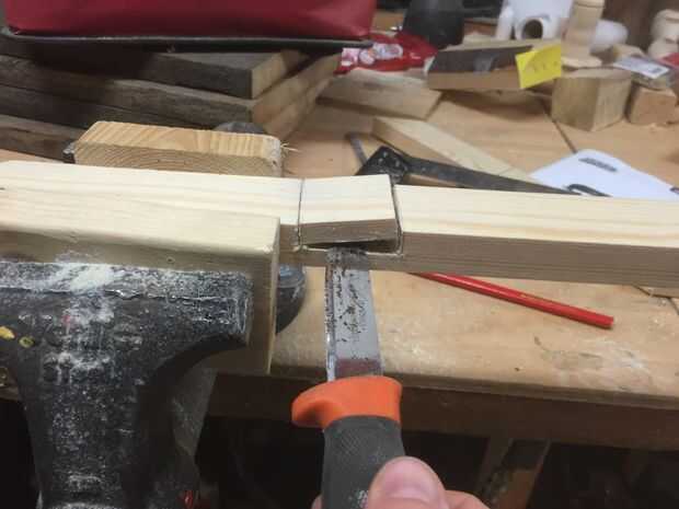 Después marqué las tablas me cortan y probé otra vez. Luego marqué donde sería la sección transversal y la profundidad que tenía que cortar. Después lo marqué comencé a corte y utiliza un cuchillo para el toque final y hasta la superficie en el corte.