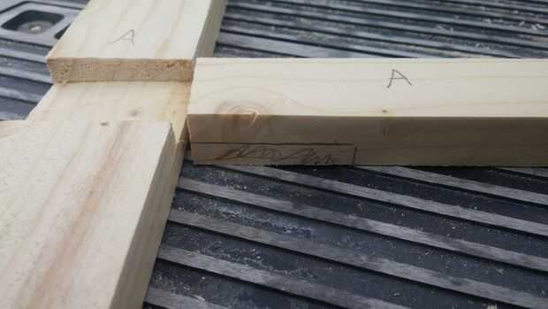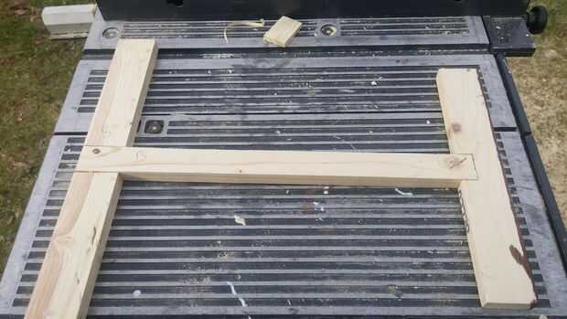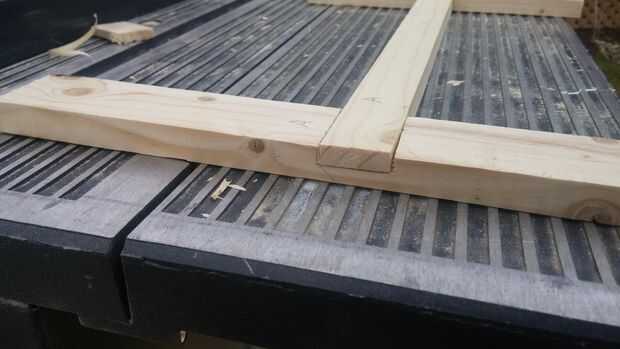Tome dos de las piezas "Front" (longitudes de 12 pulgadas) y los dos "soportes mediados" sólo se cortan. Ahora tendrá que tomar dos piezas que son ambos.5 de grosor y colocarlos uno encima del otro en forma de "T". Tenemos que cortar éstos por lo que puede caber dentro de la abertura de.5 pulgadas.
