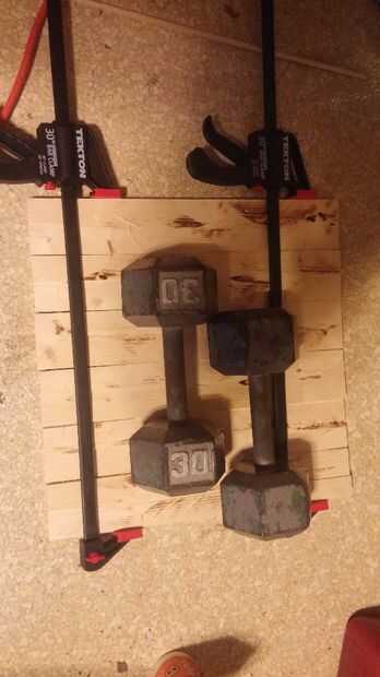 Ahora, idealmente puede tong y los surco mismo. Lo he hecho antes de usar una sierra de mesa, es mucho trabajo y lo no hice aquí. Lo hice de la manera "barata" de woodglued solo ellos juntos. Les hice una en un tiempo y dejar que ellos seco antes de añadir más. También usé un peso para evitar que se deforme. Funcionó ok.