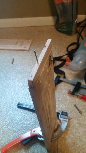 Ahora quiere pegar, martillo en los clavos de acabado y sujete cada pedazo, uno por uno. Deje secar antes de pasar. Esto le llevará un día más o menos, porque necesitas pegamento, martillo, pinza, dejar y volver varias veces.