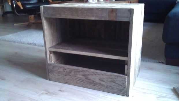 hace unos meses hice nightstand de palets, he intentado hacer más interesante para él, pero resultó que no lo esperaba! Pegué trocitos de madera en la madera base, pero había una muy grandes espacios entre piezas de madera y decidí llenar espacios co