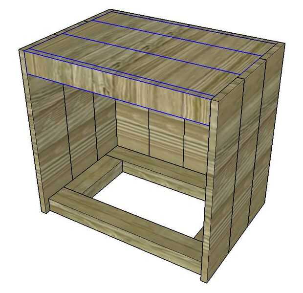 Cuando haya terminado de montar los rectángulos tienes que cortar las tablas superiores. Usar la sierra circular para cortar las piezas en el tamaño correcto. También tienes que cortar las tablas de longitud, un trabajo fácil para la sierra circular.