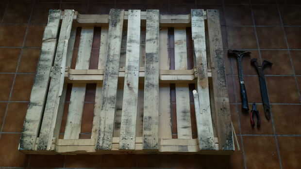 Usted necesitará conseguir tanta madera utilizable como puede salvar de su recientemente adquirida plataforma. Esto es realmente un poco más difícil de lo que suena si nunca lo has probado antes. Utilice los alicates y la garra de su martillo para quitar tanto como sea posible.
