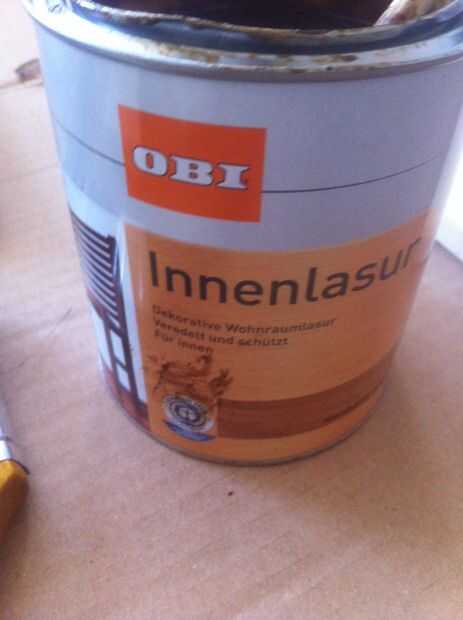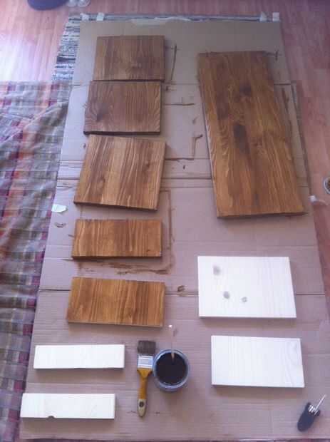 Para conseguir una mirada más rica todo color (excepto las piezas de base pequeña, pegué) con madera (nuez) de la mancha y deje que se llegar secos durante la noche. Es importante pintar siempre en la dirección de la madera para obtener un gran aspecto.