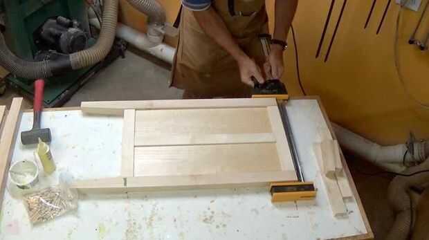 Los paneles se sientan en dado parado en las piernas y mortajas de coincidencias en los barandales superior e inferior y el estilo del centro. El montante de centro también fue dado una espiga del trozo por lo que también podrían encajar en la ranura en los barandales superior e inferior.