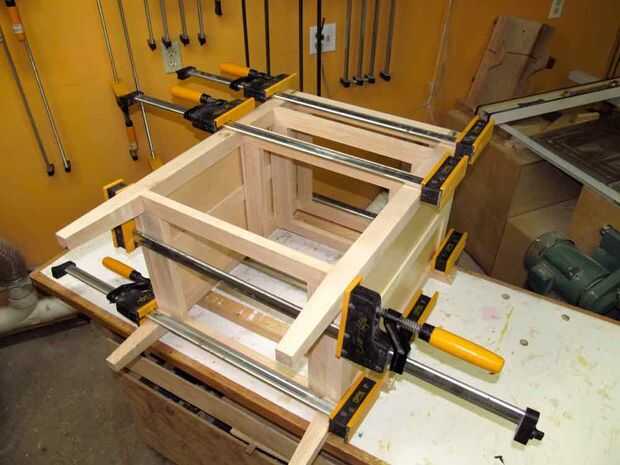 Con las Asambleas de dos laterales construidas, el siguiente paso fue construir los marcos de cajón... No sé incluso si ese es el nombre propio o no. Estos son los marcos de madera que los cajones en y también actúan como divisorio entre los frentes de cajón. Estas fueron también de stock arce, enclavijadas juntos y luego montadas a los lados usando tacos.