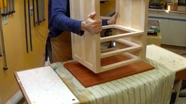 Os adjunto la parte superior de la canal con algunos tornillos a través de la parte superior del marco del gabinete. Los agujeros fueron alargados un poco para permitir alguna temporada expansión y contracción de la parte superior.