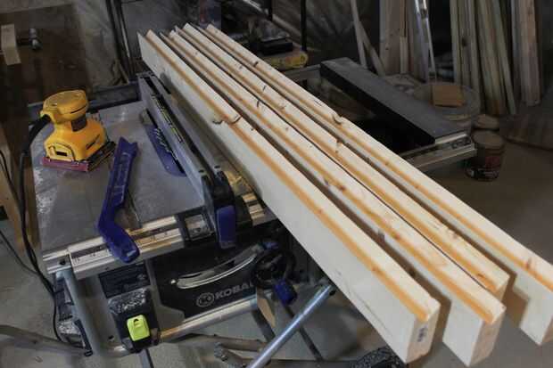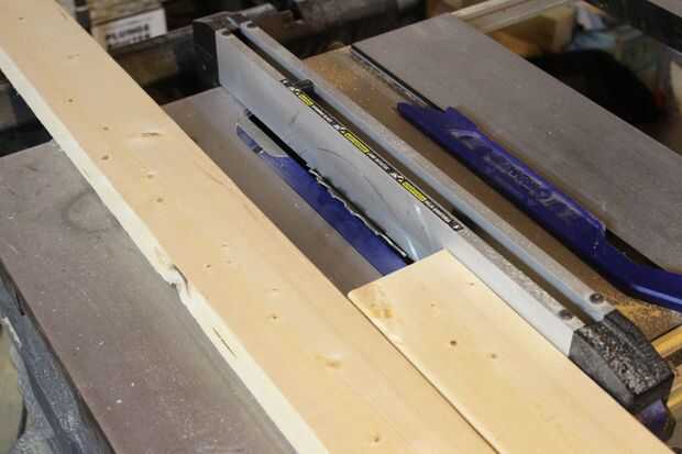 Primero le corte la muesca en V en el 2x4s. Era más fácil para mí trabajar con tableros más cortos así que corte el 2x4s a 48" de largo. Ajuste el ángulo de hoja de Sierra de mesa a 45 grados y mover la guía de corte para que solo pase la hoja. En este punto quizá quieras experimentar con madera de desecho hasta la altura de la lámina hace una marca perfecta de V. dos pases para completar la muesca. Repita este proceso para las cuatro 48" secciones.