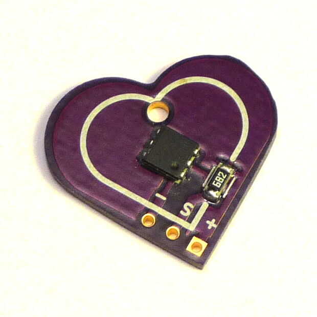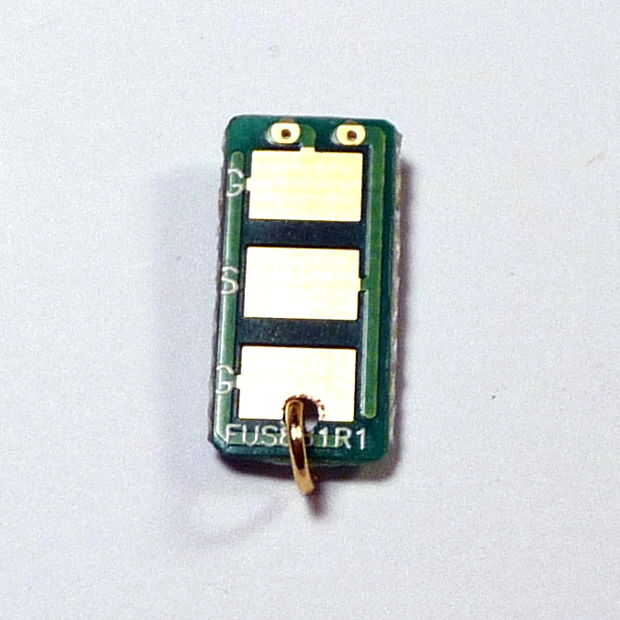 La PCB tiene tres almohadillas en la parte inferior, con una en la media marcada "S", que podemos suponer significa señal, y los de los bordes marcan "G", que por proceso de eliminación que podemos asumir son tierra. A pesar del chip tiene seis patas, mirando el espectáculo de la hoja de datos que se utilizan sólo dos, uno para la tierra y otros señal o "IO".