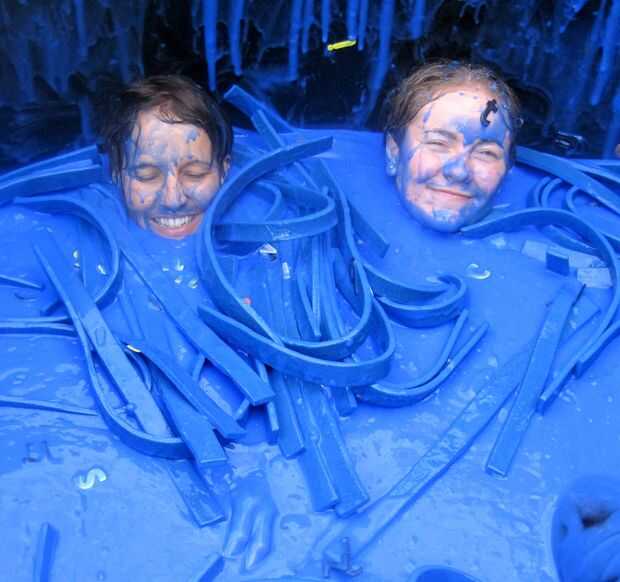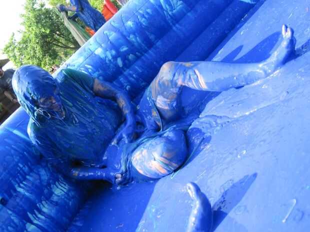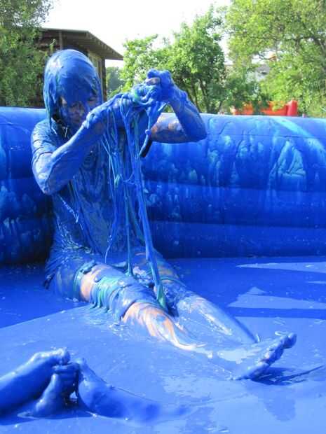 Una piscina llena de agua hace una buena manera de limpiar la mayor parte del mess-otra vez un par de franelas o similares ayudan a este a lo largo.