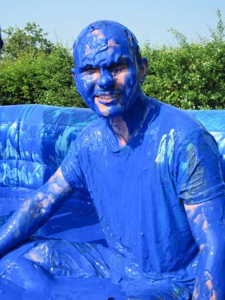 Una vez que los participantes han limpiado apagado el peor de lo goo, entonces tenemos una ducha disponible. Normalmente ponemos una ducha exterior en lugar - en nuestro caso una ducha de jardín Gardena viejo conectada al agua caliente en la casa, pero hemos utilizado un cabezal de ducha de mano que se puede conectar a un baño así.