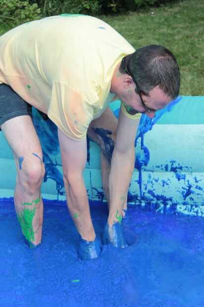 Los miembros del equipo lo toman por turnos para venir al tanque y pescar una bola y volver a su equipo. Una vez que tienen el asimiento de lo que no pueden cambiar su mente. Generalmente corremos el que los participantes tienen que llegar a la piscina, pero para un evento más pequeño con un pequeño tanque (tanque de la calefacción central o similar) podría simplemente lean en.