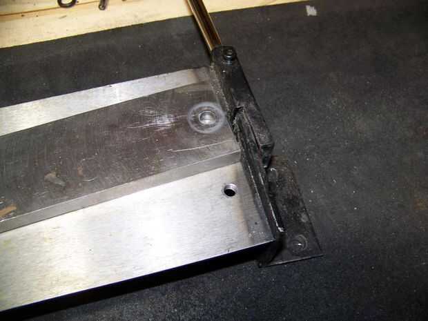 Toque la base del freno con un 3/8 - 16 grifo en ambos extremos. Vuelva a perforar los agujeros de 5/16 en la barra de fijación con una broca de 25/64 para que los tornillos de 3/8 mando pasará a través de ellos.