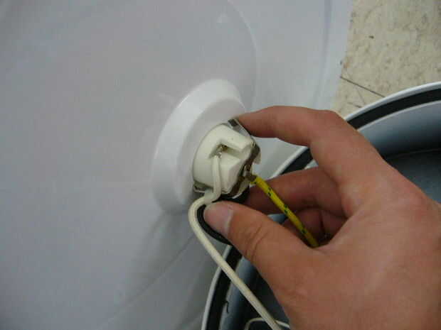Se reutilizar la placa superior, pero la lámpara de inducción utiliza un zócalo de diferente por lo que podemos eliminar el zócalo del bulbo de haluro de metal, presionando en los dos clips de resorte.