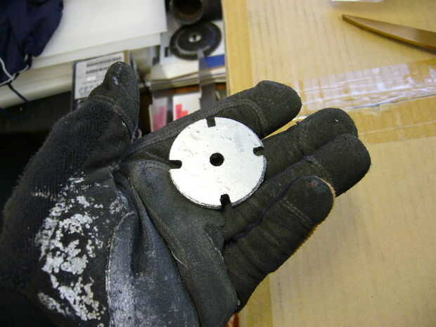 Entonces hice una 2" montaje de placa de 1/4" acero y ranura ranuras para los 4 tornillos de montaje. Esto permite que la placa superior original a "intercalado" entre la lámpara de la inducción y la placa de montaje.